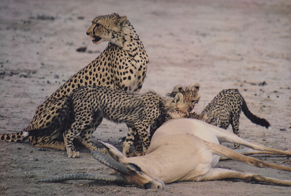 Cheetah and Cubs with Prey, Amboseli, Kenya, September 17, 1970