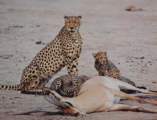 Cheetahs with Kill, Amboseli, Kenya, September 17, 1970