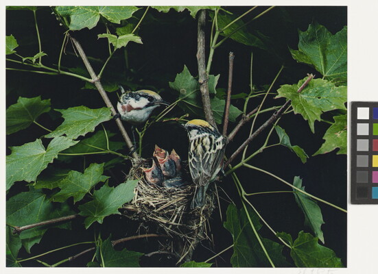 u.l. [stamp]: PHOTOGRAPH \ By \ ELIOT PORTER \ No. [in ink]: 15-13-16-30 \ [stamp]: Title [in ink]: CHESTNUT-SIDED WARBLERS