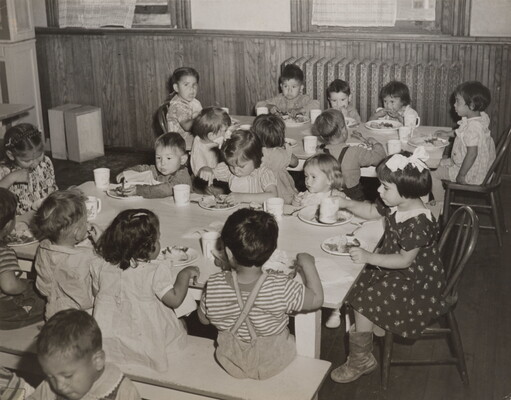 [Children eating a meal at school]