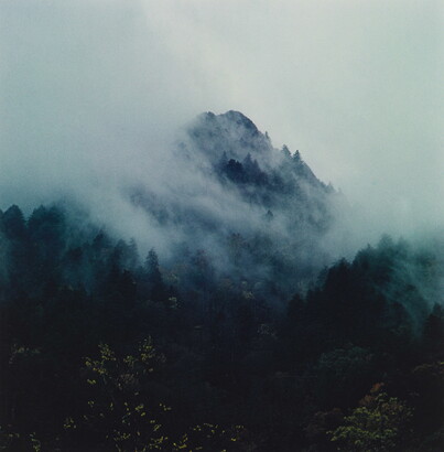 Chimney Tops in Clouds, Newfound Gap Road, Great Smoky Mountains National Park, Tennessee, October 17, 1967