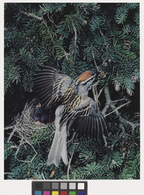 u.l. [stamp]: PHOTOGRAPH \ By \ ELIOT PORTER \ No. [in ink]: 15-6-15-21 \ [stamp]: Title [in ink]: Chipping Sparrow