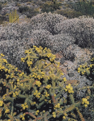 Cholla and Brittlebush, Tres Virgenes Canyon, Baja California, Mexico, March 2, 1964
