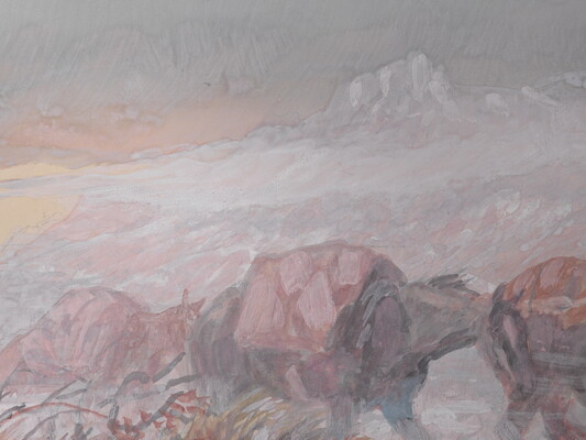 Opaque and transparent watercolor over graphite underdrawing on paper