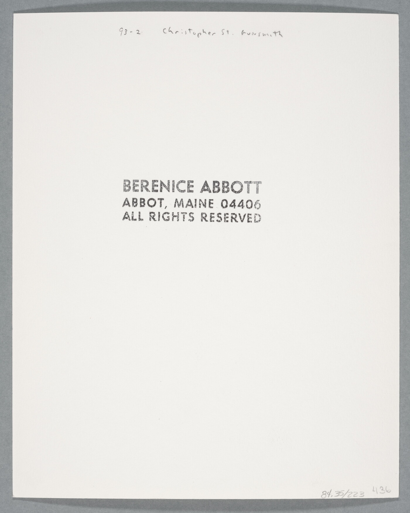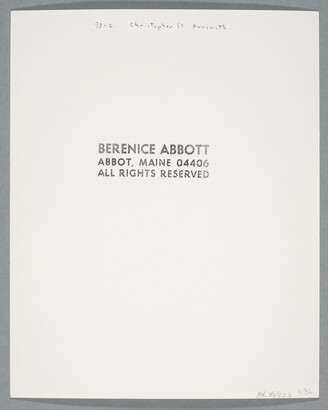 c. stamp: BERENICE ABBOTT \ ABBOT, MAINE 04406 \ ALL RIGHTS RESERVED