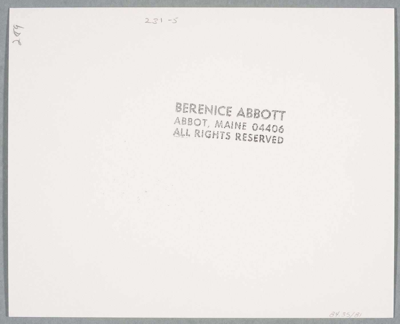 c. [stamp]: BERENICE ABBOTT \ ABBOT, MAINE 04406 \ ALL RIGHTS RESERVED