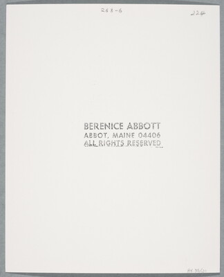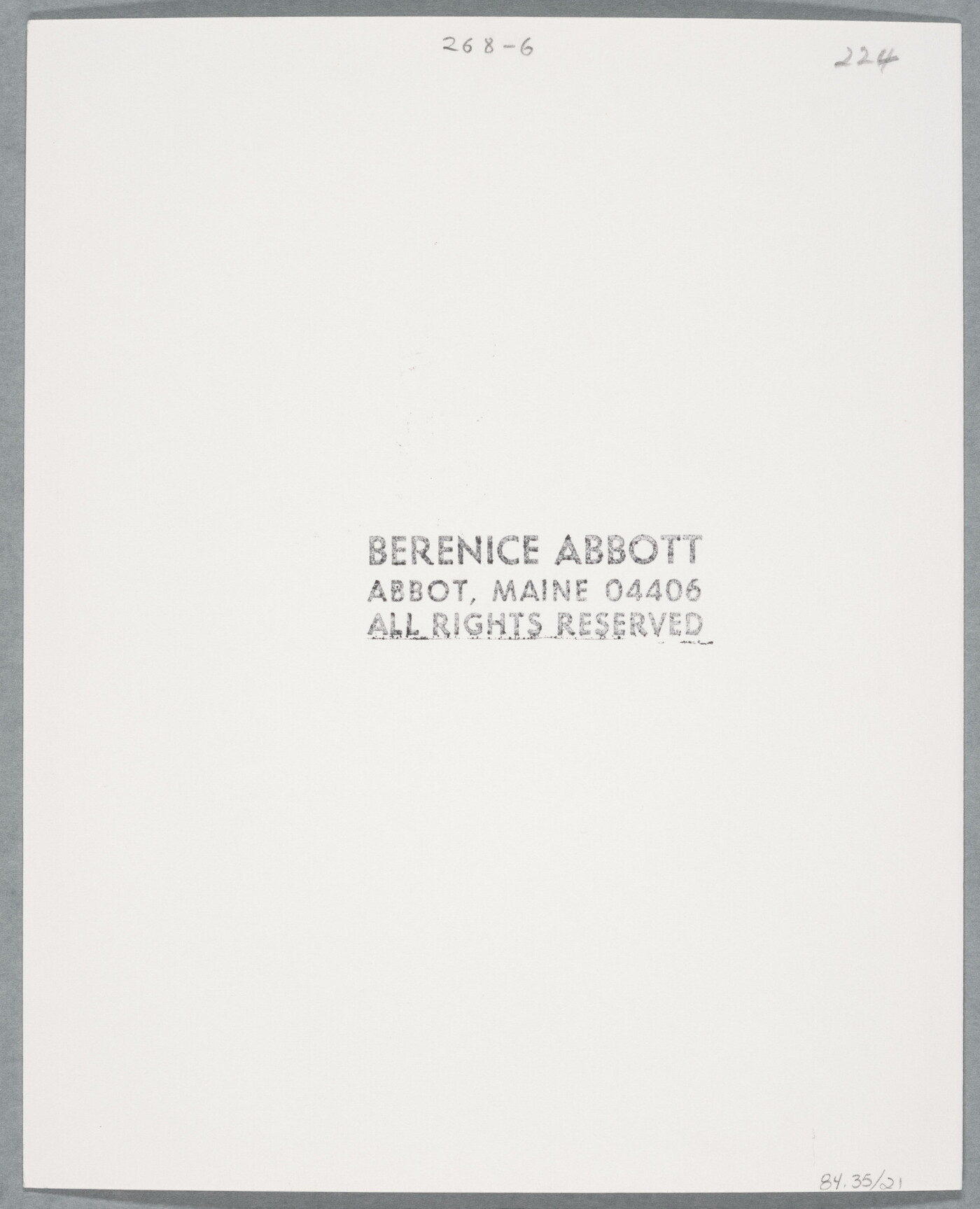 c. stamp: BERENICE ABBOTT \ ABBOT, MAINE 04406 \ ALL RIGHTS RESERVED