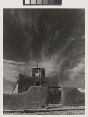 u.l. [stamp]: PHOTOGRAPH \ By \ ELIOT PORTER \ No. [in ink]: 40-20 \ [stamp]: Title [in ink]: CHURCH, CORDOVA \ NEW MEXICO 1940