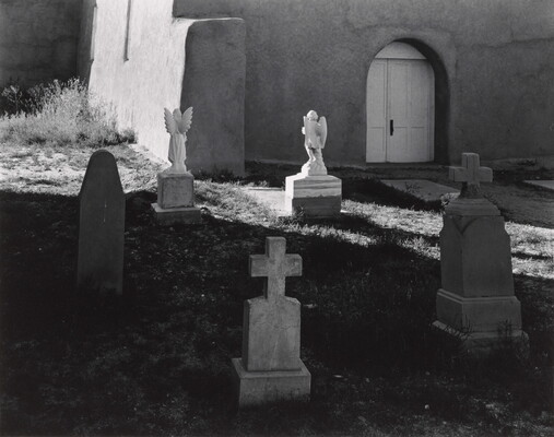 u.l. [stamp]: PHOTOGRAPH \ By \ ELIOT PORTER \ No. [in ink]: 810-48-62 \ [stamp]: Title [in ink]: CHURCHYARD, VELARDE \ NEW MEXICO 1948