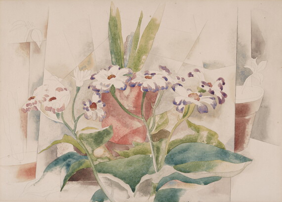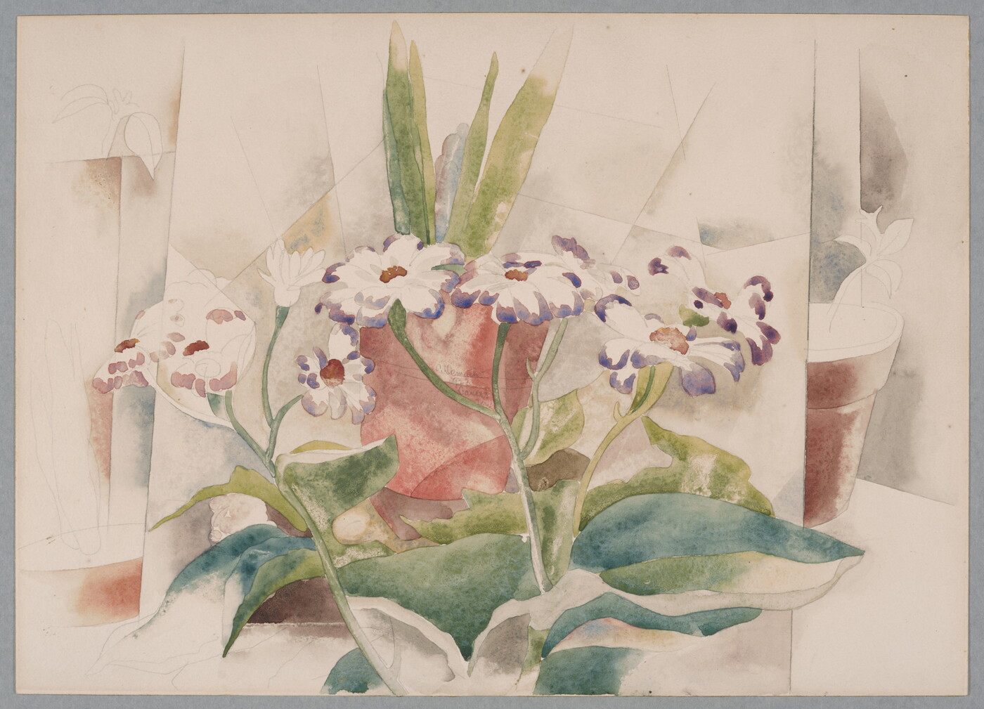 [removed] typewritten white label: A 2003 Charles Demuth \ CINERARIA 1923 \ Watercolor \ 9 7/8 x 13 7/8 inches \ Signed, dated, titled