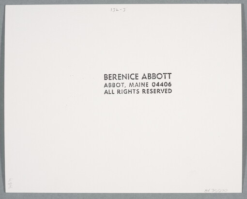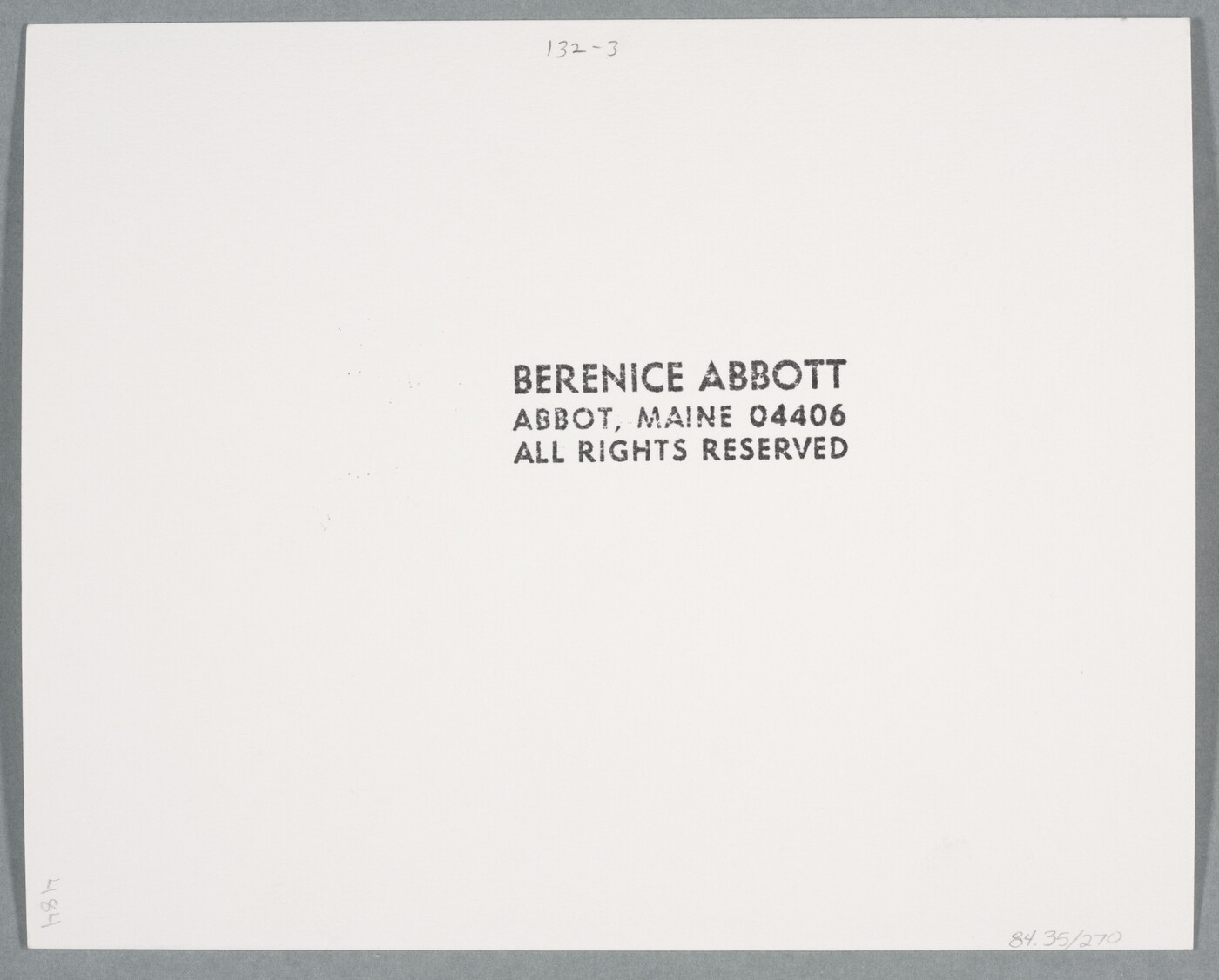 c. [stamp]: BERENICE ABBOTT \ ABBOT, MAINE 04406 \ ALL RIGHTS RESERVED