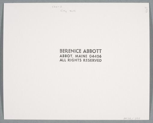 c. stamp: BERENICE ABBOTT \ ABBOT, MAINE 04406 \ ALL RIGHTS RESERVED
