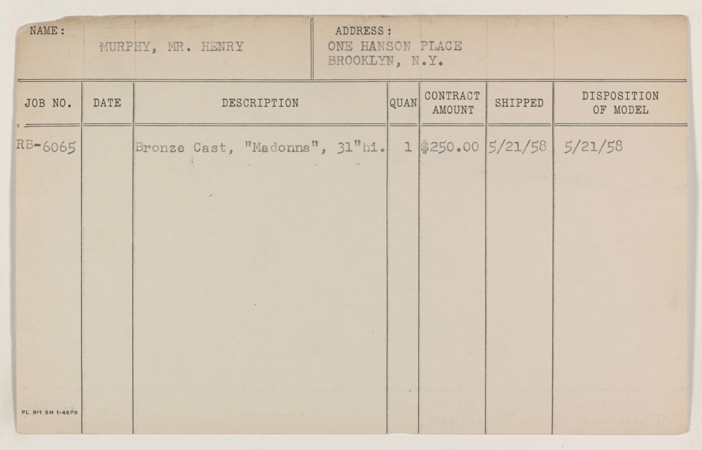 Description Murphy, Henry, Brooklyn, New York; 6065 Madonna 1958 1958 31"