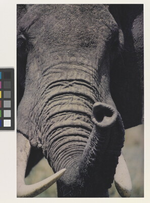 u.l. [stamp]: PHOTOGRAPH \ By \ ELIOT PORTER \ No. [in ink]: rOLL, nO. 7 \ [stamp]: Title [in ink]: Elephant \ Murchison Park \ Uganda 1970