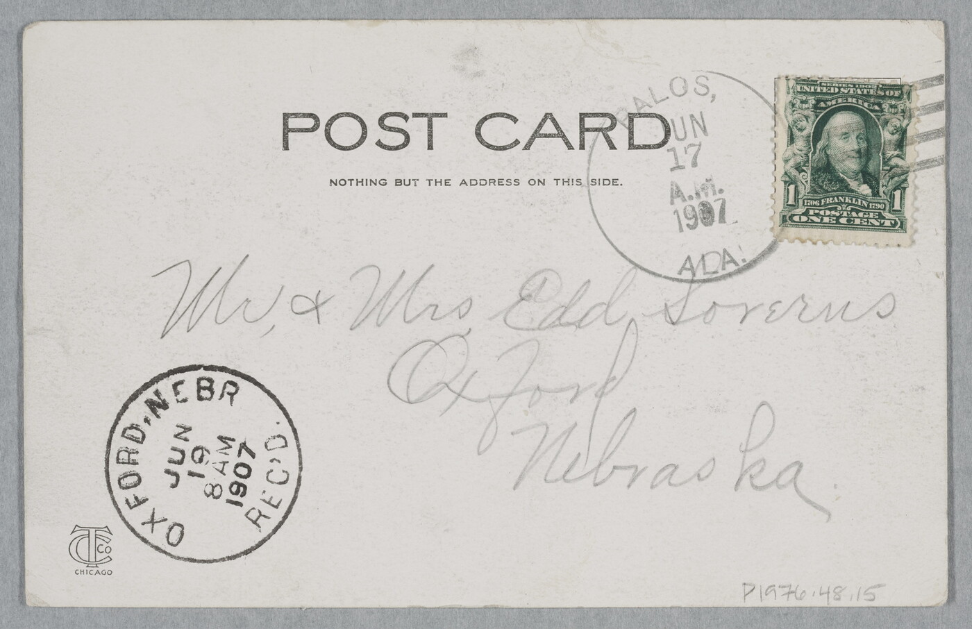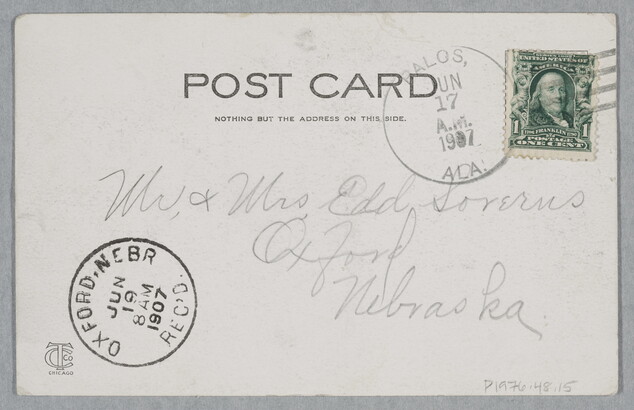 c.l. to l.r. in graphite: Mr. = Mrs. Edd Sorerns \ Oxford \ Nebraska.