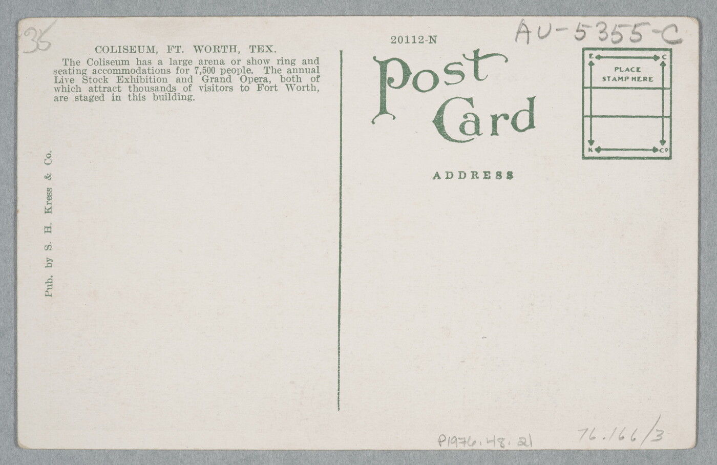 u.l. printed: Coliseum, Ft. Worth, Tex.