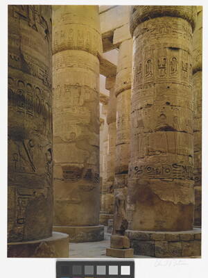 u.l. [stamp]: PHOTOGRAPH \ By \ ELIOT PORTER \ No. [in ink]: 73-66 \ [stamp]: Title [in ink]: COLUMNS IN HYPOSTYLE \ TEMPLE OF AMEN [sic] \ KARNAK, LUXOR, EGYPT