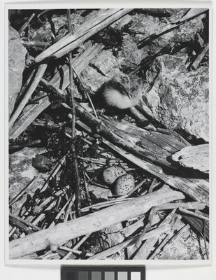 u.l. [stamp]: PHOTOGRAPH \ By \ ELIOT PORTER \ No. [in ink]: 2-2-4-2 \ [stamp]: Title [in ink]: Common Tern \ Nest and Young \ [in red marker]: PHOTO #9-A