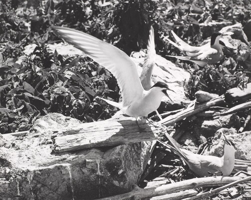 u.l. [stamp]: PHOTOGRAPH \ By \ ELIOT PORTER \ No. [in ink]: 2-2-4-6 \ [stamp]: Title [in ink]: Common Terns \ [in red marker]: PHOTO #8-A