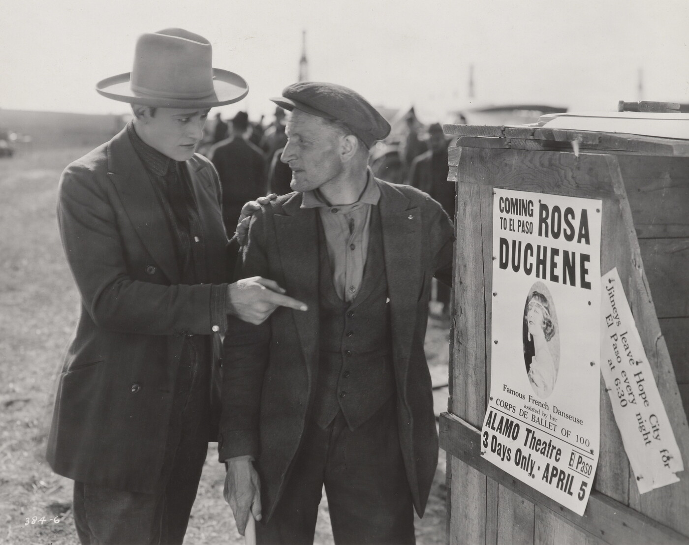 [Conrad Nagel and man looking at ballet poster, "Fool's Paradise"]