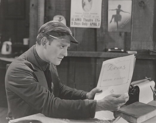 [Conrad Nagel at typewriter with poetry book, "Fool's Paradise"]