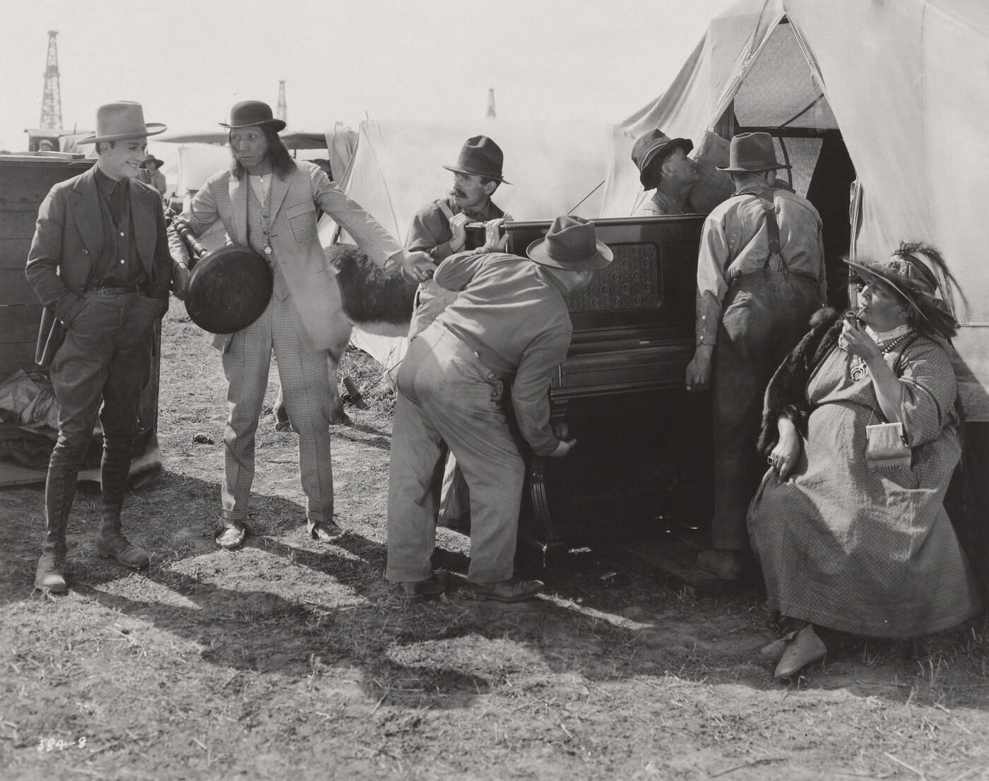 [Conrad Nagel watching men move piano, "Fool's Paradise"]