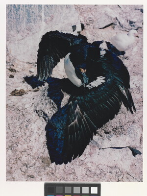 u.l. [stamp]: PHOTOGRAPH \ By \ ELIOT PORTER \ No. [in ink]: Roll 29, No. 13 \ [stamp]: Title [in ink]: Blue-eyed Shag \ Joubin Islands