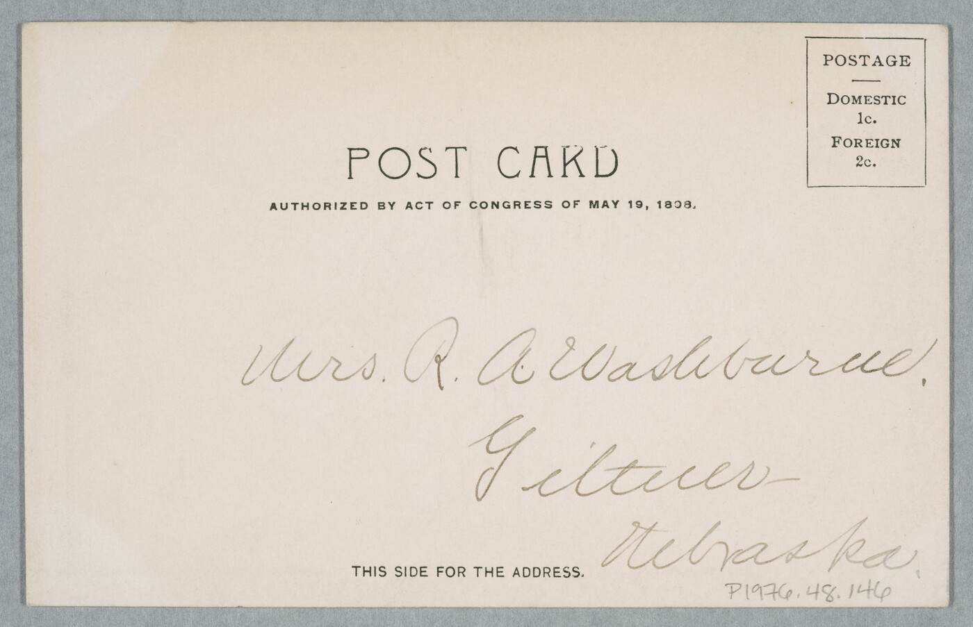 c. to l.r. in black ink: Mrs. R.A. Washburne. \ Y. Huer -- \ Nebraska