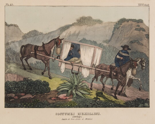 Costumes Mexicains. (Attelage) Litière de Vera Cruz à Mexico., 1828