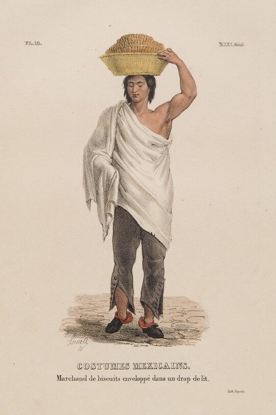 Costumes Mexicains. Marchand de biscuits enveloppé dans un drap de lit., 1828