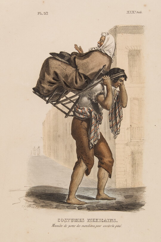 Costumes Mexicains. Manière de Porter des Mendians, pour Exciter la Pitié., 1828