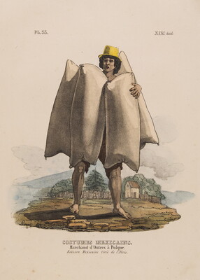 l.c.: COSTUMES MEXICAINS. \ Marchand d'Outres á Pulque. Boisson Mexicaine tirée de l'Aloès.