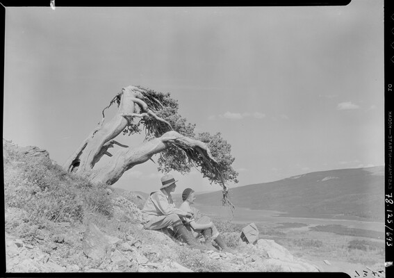 [Couple under windswept tree, Glacier National Park]