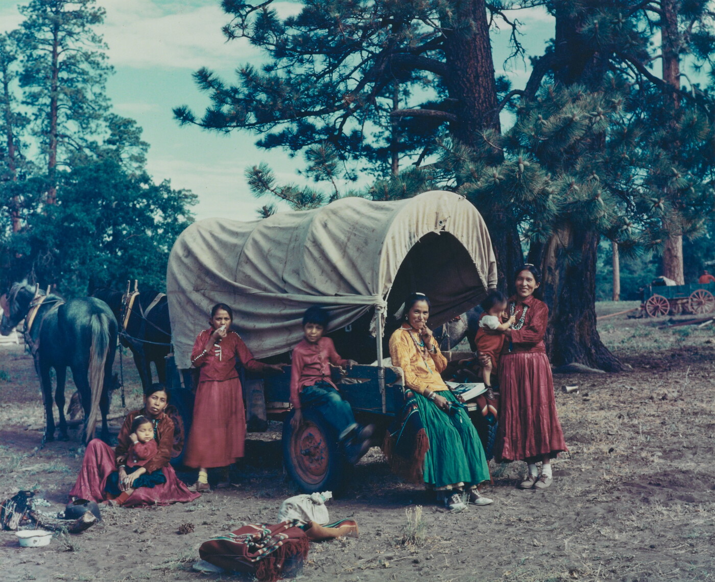 u.c. on paper label: [printed]: A PHOTOGRAPH BY \ LAURA GILPIN \ SANTA FE, NEW MEXICO \ [typed]: THE COVERED WAGON \ 1951 \ from THE ENDURING NAVAHO \