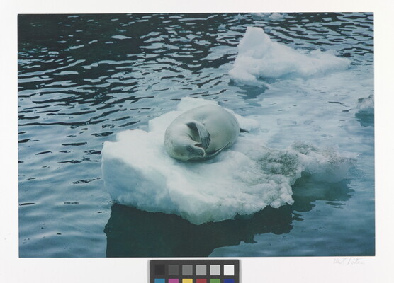 u.l. [stamp]: PHOTOGRAPH \ By \ ELIOT PORTER \ No. [in ink]: Roll 76, No. 30 \ [stamp]: Title [in ink]: Crabeater Seal \ Palmer Station