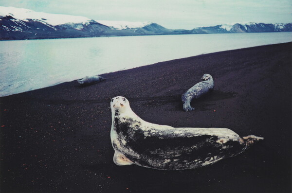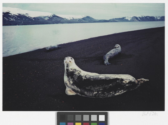 u.l. [stamp]: PHOTOGRAPH \ By \ ELIOT PORTER \ No. [in ink]: Roll 89, No 34 \ [stamp]: Title [in ink]: Crabeater Seals \ Deception Island \ Antarctica