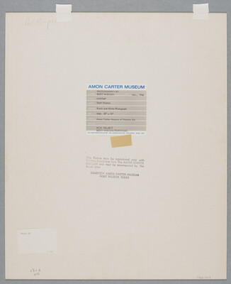 c. [stamp]: This Picture may be reproduced only with \ Written Permission from the AMON CARTER \ MUSEUM and must be accompanied by The \ Credit Line: \ COURTESY AMON CARTER MUSEUM \ FORT WORTH, TEXAS