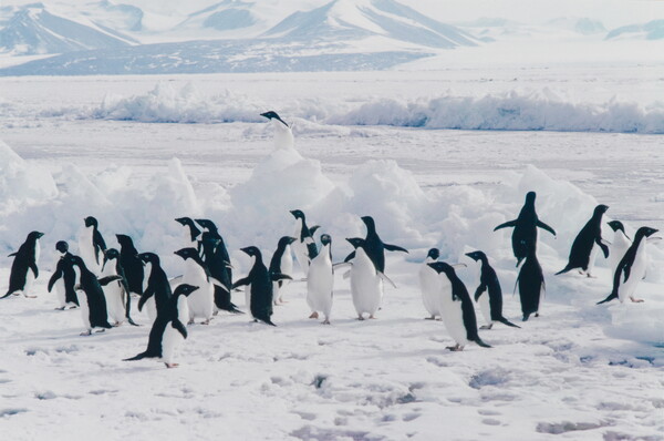 Dancing Adélie Penguins, McMurdo Sound, Antarctica, January 1976