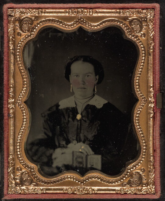 [Older woman in dark dress with shawl-like collar], ca. 1850-1860