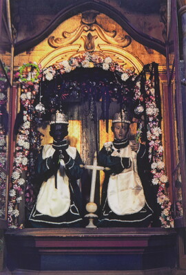 Dark-skinned and Light-skinned Images of Saint in Altar Niche, Ixtepec, Oaxaca, Mexico, 1955-1956