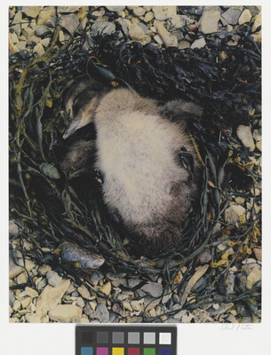 u.l. [stamp]: PHOTOGRAPH \ By \ ELIOT PORTER \ No. [in ink]: 81-16 \ [stamp]: Title [in ink]: Eider Duckling \ G.S.H.I., Maine