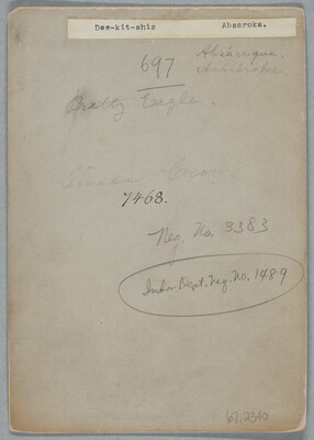 c. in graphite: Sionan Crow. \ [in ink] 7468. \ [in graphite]: Neg. No. 3383 \ Indian Dept. Neg. No. 1489