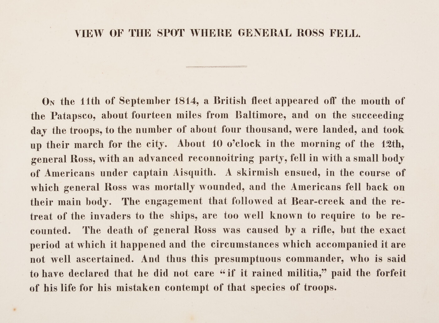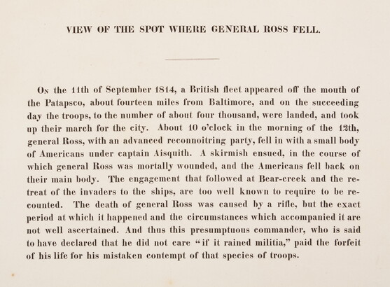 u.c.: VIEW OF THE SPOT WHERE GENERAL ROSS FELL. \ ------ \ [Descriptive account]