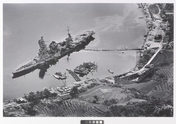 inscribed: #18718 \ C-2 \ 5/(2C2-2?) \ Destroyed Japanese \ battleship \ --photographed before the \ surrender \ August 1945 \ P