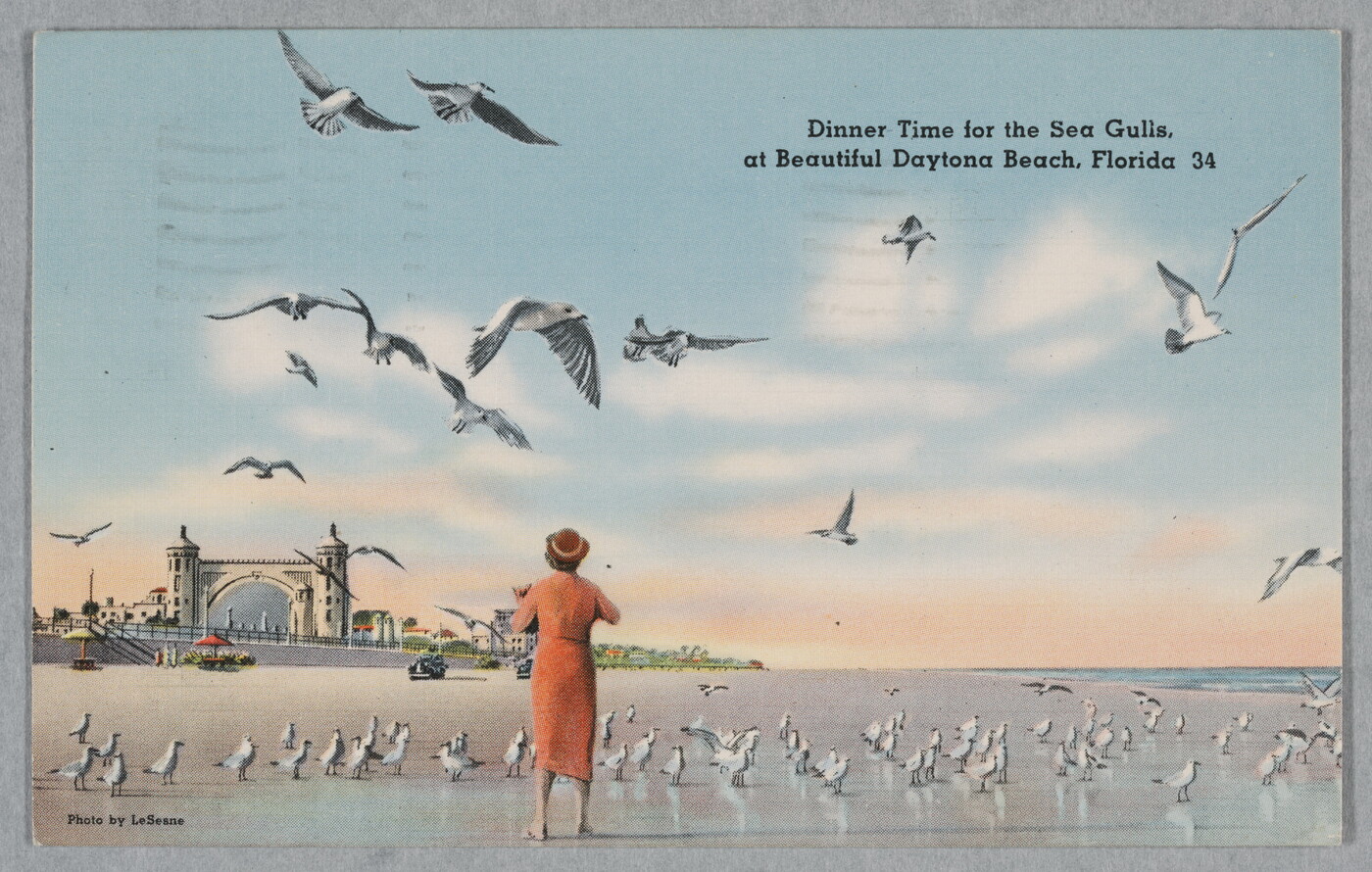 u.r. printed: Dinner Time for the Sea Gulls, \ at Beautiful Daytona Beach, Florida 34