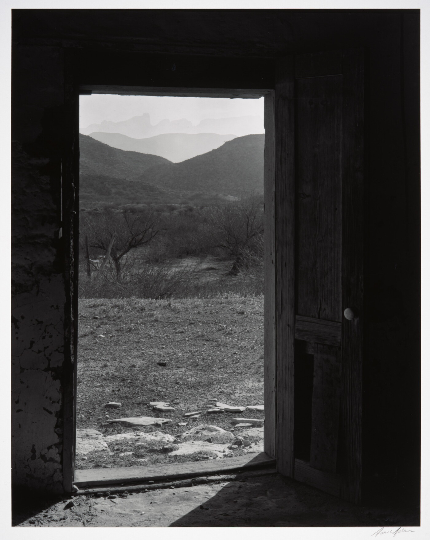 c. [stamp]: Photograph by Ansel Adams \ [in ink] Doorway of old building \ [in ink] Big Bend National Park, Texas \ Route 1 Box 181 Carmel, California 93921