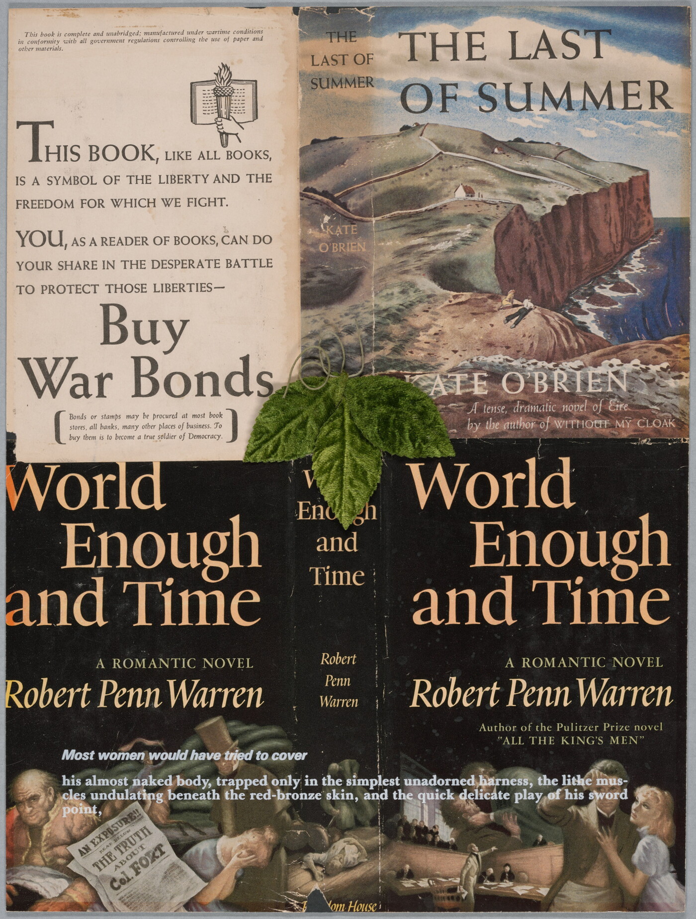 Frame, verso: c. on printed label: MARCO LEAVIN GALLERY / Alexis Smith / Christmas Eve, 1943 [underlined] / #9, Dust Jacket [underlined] / 1982 / Mixed media / 20 3/8 x 16 3/8 inches