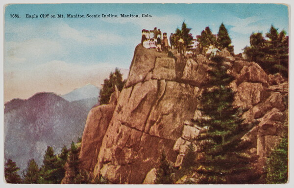 u.l. to u.c. printed: 7685. Eagle Cliff on Mt. Manitou Scenic Incline, Manitou, Colo.