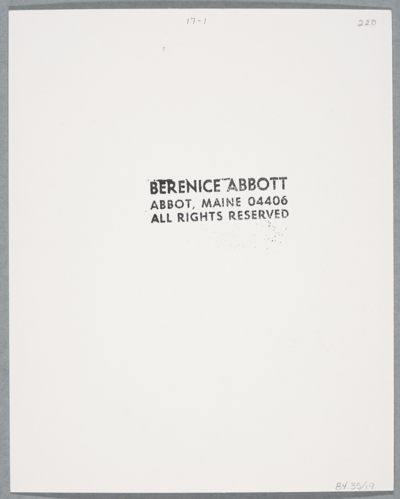 c. stamp: BERENICE ABBOTT \ ABBOT, MAINE 04406 \ ALL RIGHTS RESERVED