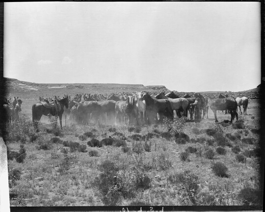 Some LS cowpunchers catching up their mounts from the remuda. LS Ranch, Texas., 1907